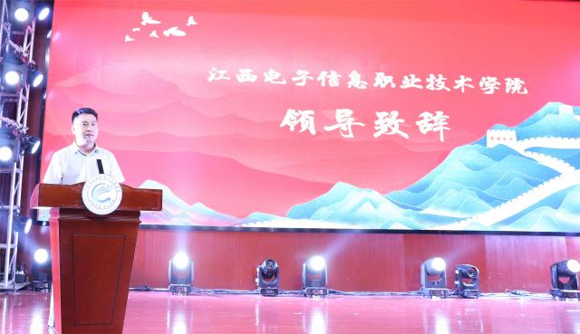 活动在江西电子信息职业技术学院周重军副校长的致辞中拉开序幕。他强调,红色基因是中华民族的精神命脉,青年学子应赓续革命薪火,将爱国情怀转化为担当实干的青春力量。随后,该校以一则古典舞蹈《一梦惊鸿》惊艳开场,舞者以翩跹之姿将传统文化与红色精神交融,赢得满堂喝彩。