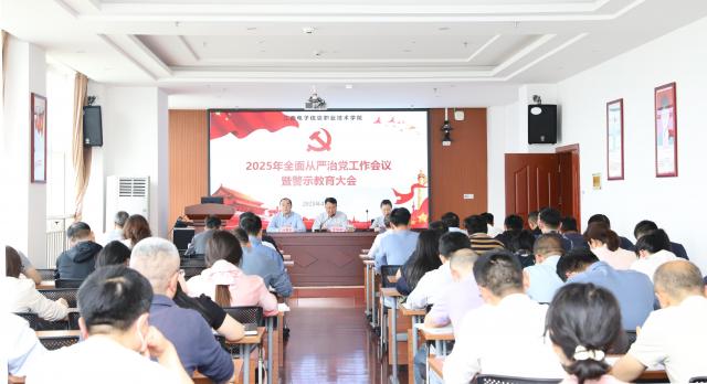 4月9日下午,学校召开2025年全面从严治党工作会议暨警示教育大会。会议由肖红秋同志主持,全体校领导、中层干部及支委参会。