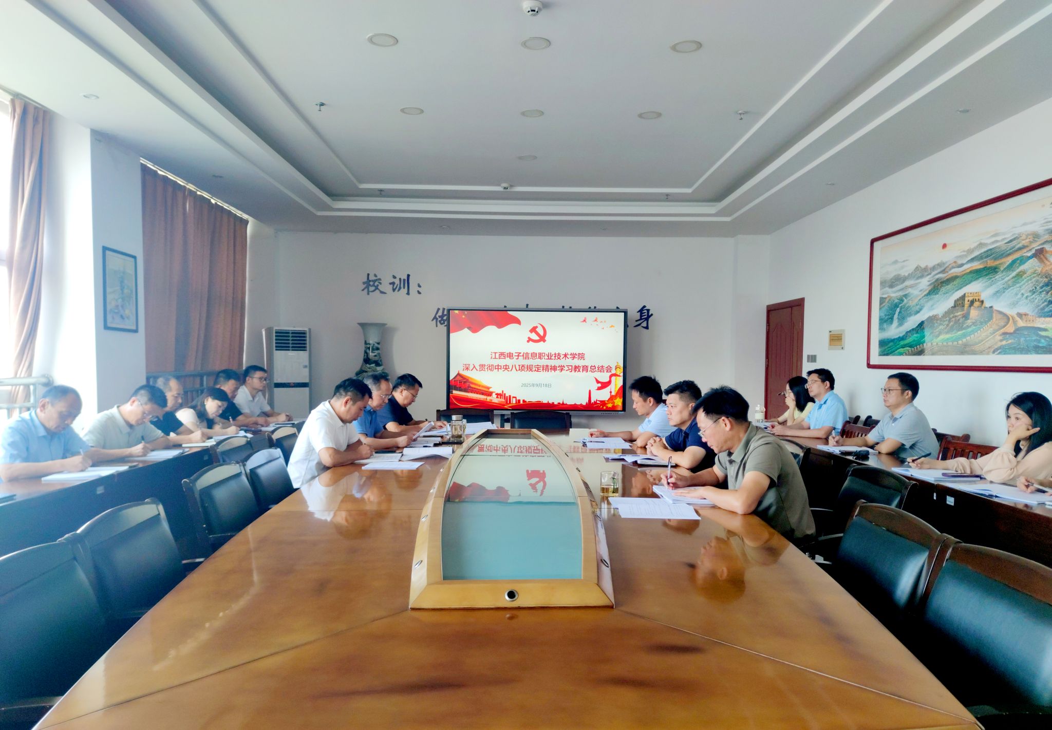 9月18日下午,江西电子信息职业技术学院召开党委会议,传达学习习近平总书记重要指示精神和中央党的建设工作领导小组会议、省委常委会会议、委厅学习教育总结会议精神,全面总结学校深入贯彻中央八项规定精神学习教育开展情况,对常态长效推进作风建设作出安排部署。学校党委书记肖红秋主持会议。